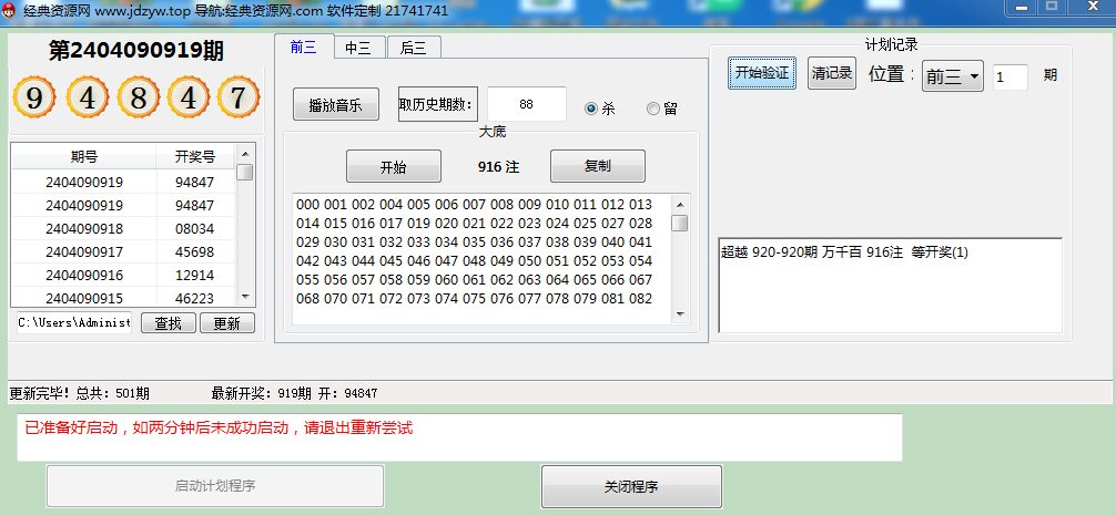 彩票无神,各位做研究参考只用,软件每次打开可运行8小时,需要无限制版请购买卡密需要无限制版请购买卡密,更多计划请登录:经典资源网.com 或者 www.aardio.top