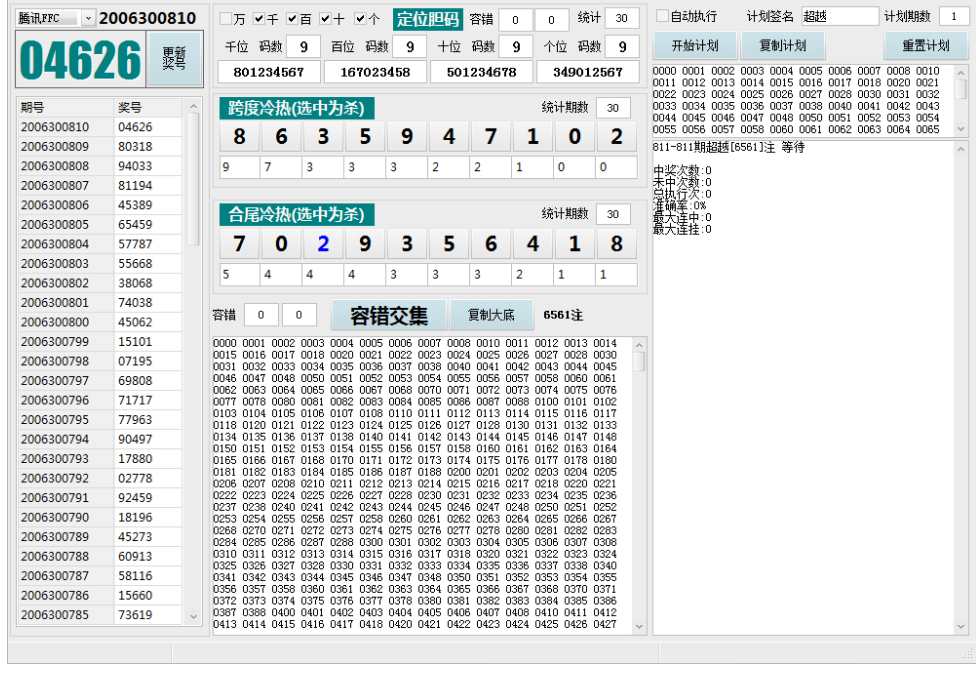 本软件为四星后四定位冷热统计出号系统,理论上这个思路支持任意FFC/SSC 软件自带的开奖已经失效,使用请自行对接所在平台的挂机软件开奖 软件支持容错,一次设置后面都是自动出号...