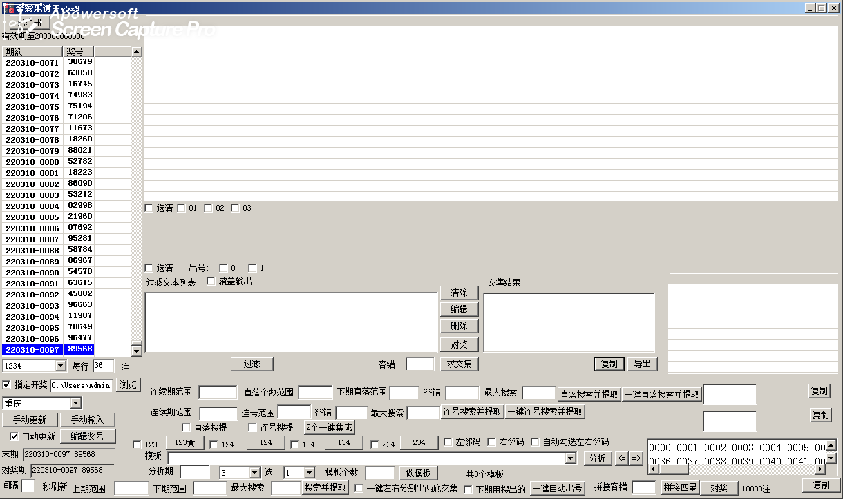 本软件可以说得上是手打玩家自由组号的神器,支持的玩法大底号码较多 软件现在已经破解,可以无限制的使用所有的功能不限制时间,支持大底号码的交集和胆码的杀码缩水等功能 下载...