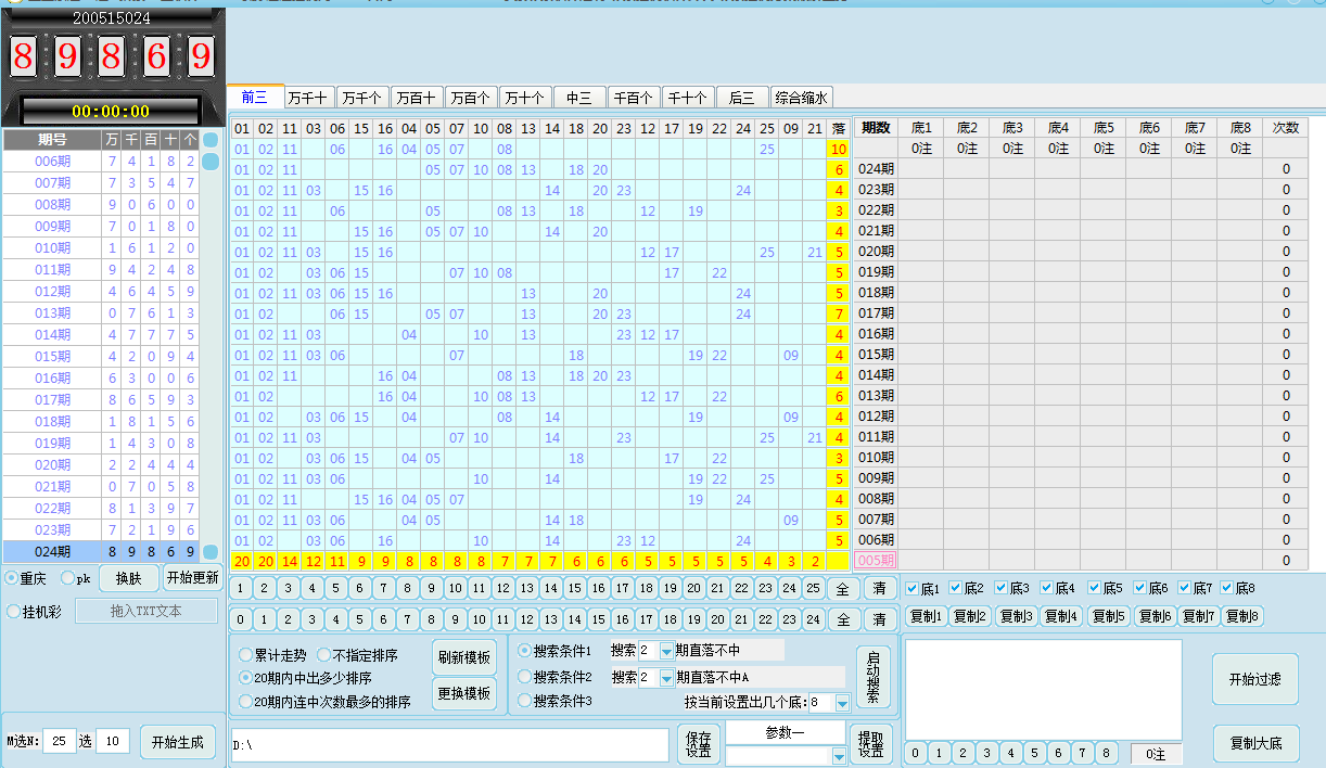 一款功能非常强大的时时彩乐透型模板做号软件,支持三星十个位置条件整合筛选出号